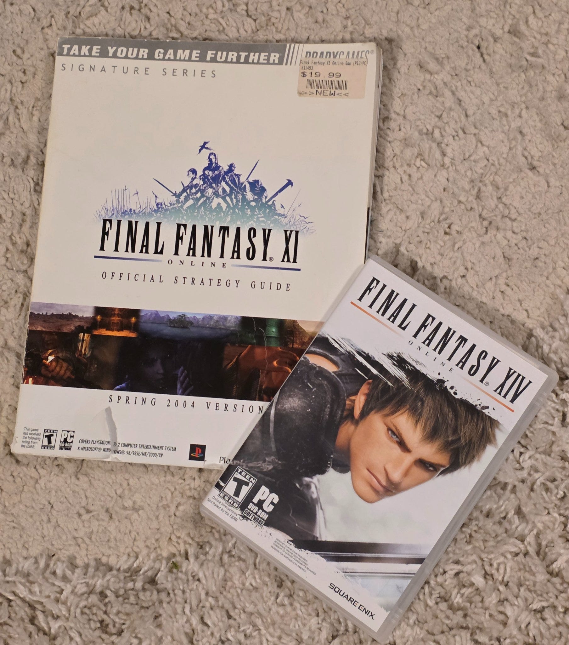 Spring cleaning and found some Final Fantasy MMORPG relics from the past. I found my FF11 strategy guide and my original boxed copy of FF14. FF11 was my very first MMORPG experience and holds a lot of great memories. My longest gaming marathon of 18 hours was in FF11 and that did not go over well with the wife! I played FF14 before it was revamped into what it is today. Interesting seeing the changes from it’s first run. Ahhh some MMO nostalgia!